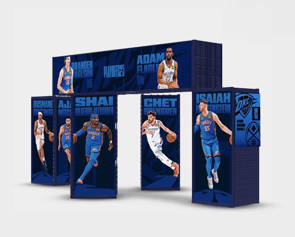 This was the second year developing the cargo container installation for Thunder Up in the Park. Rather than treating it as a step up from 2024, the focus was to move the structure in a direction that aligned more closely with the 2025 Playoffs campaign and its emphasis on collective depth.